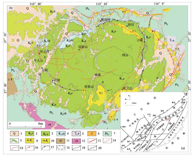 相山铀矿田大地构造位置和地质简图